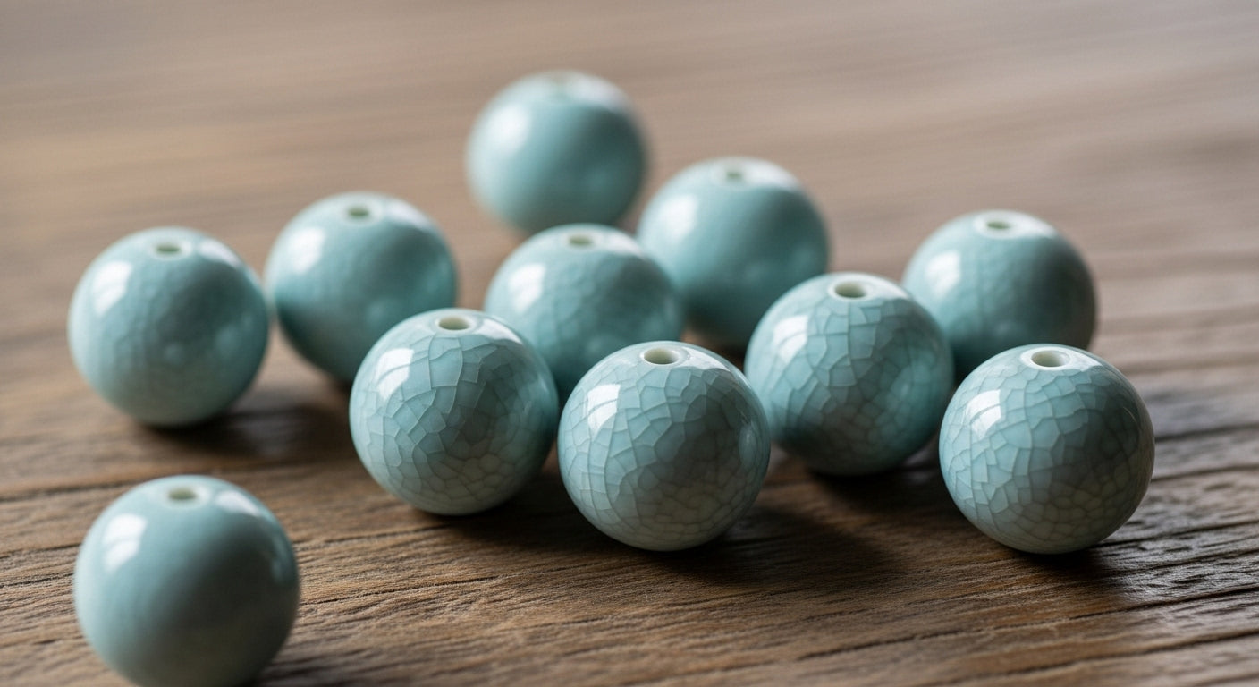No two beads are identical. Each one boasts a completely unique crackle pattern ("ice veins") formed naturally in the kiln.